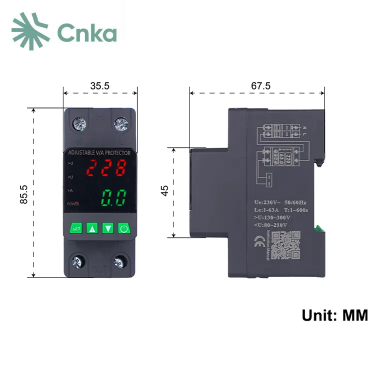 CNKA е добре известен китайски доставчик, който осигурява на едро на двойния дисплей на протектора за напрежение на марка. Тези устройства са проектирани специално за еднофазни AC 220V, 50Hz вериги с номинален ток 63A, което ги прави идеален избор за защита на жилищните кутии или проводници, доставящи енергия на еднофазно оборудване.
